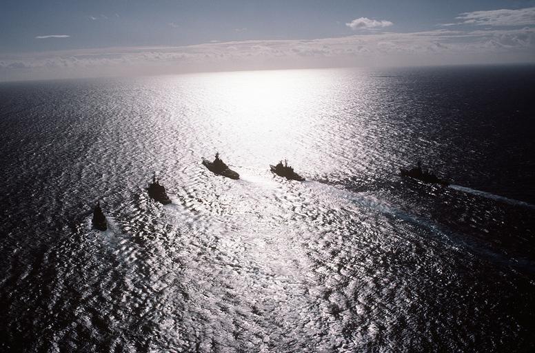 | Keywords: n1601 mediterranean sea mediterraneansea sand sea outdoor ocean water texture wave An aerial port quarter view of the battleship USS IOWA (BB-61) battle group underway in formation. The ships are, left to right: frigate USS PAUL (FF-1080), destroyer USS DEYO (DD-989), battleship USS IOWA (BB-61), guided missile cruiser USS TICONDEROGA (CG-47) and the guided missile destroyer USS DEWEY (DDG-45), 1988. Official U.S. Navy Photograph, now in the collections of the National Archives in the Online Public Access. An aerial port quarter view of the battleship USS IOWA (BB-61) battle group underway in formation. The ships are, left to right: frigate USS PAUL (FF-1080), destroyer USS DEYO (DD-989), battleship USS IOWA (BB-61), guided missile cruiser USS TICONDEROGA (CG-47) and the guided missile destroyer USS DEWEY (DDG-45), 1988. Official U.S. Navy Photograph, now in the collections of the National Archives in the Online Public Access. |