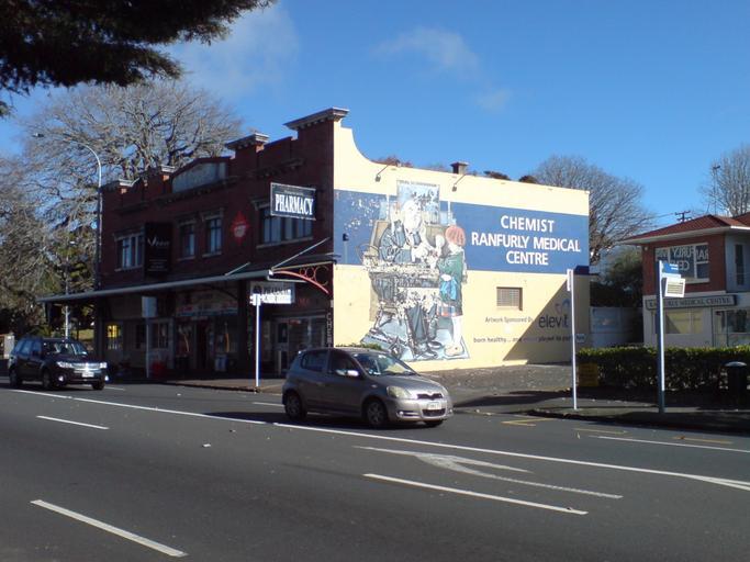 | Keywords: Doctor's Mural Near Ranfurly Road.jpg  A wall mural advertising respectively a doctor's practice and a pharmaceutical company in Auckland City New Zealand Sadly damaged and getting worse fast self-photographed 2010 Uploader -36 8847267 174 7756684 Photos taken by Ingolfson 2010 in New Zealand Murals in New Zealand Medicine in art Puppets in art Children in art Shops in Auckland Epsom New Zealand Stethoscopes in art Pharmacies in New Zealand Advertisements in New Zealand Bus stops in New Zealand Wall Painted Advertising |