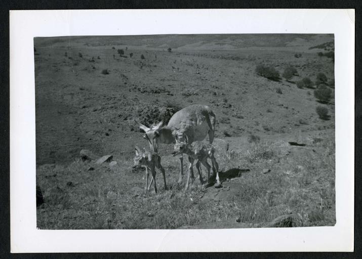 | Keywords: smithsonian institution archives smithsonianinstitutionarchives smithsonian field book project fieldbookproject photo border outdoor Creator: Helmut Karl Buechner Local number: SIA2014-00021 Summary: Photograph documents observations of pronghorn in Texas by Helmut Buechner in 1947. Dates: 1947 Collection: SIA RU 007279, Helmut Karl Buechner Papers, 1939-1975, Box 29, Folder 1, Envelope 20 Repository: Smithsonian Institution Archives View more collections from the Smithsonian Institution. Creator: Helmut Karl Buechner Local number: SIA2014-00021 Summary: Photograph documents observations of pronghorn in Texas by Helmut Buechner in 1947. Dates: 1947 Collection: SIA RU 007279, Helmut Karl Buechner Papers, 1939-1975, Box 29, Folder 1, Envelope 20 Repository: Smithsonian Institution Archives View more collections from the Smithsonian Institution. |