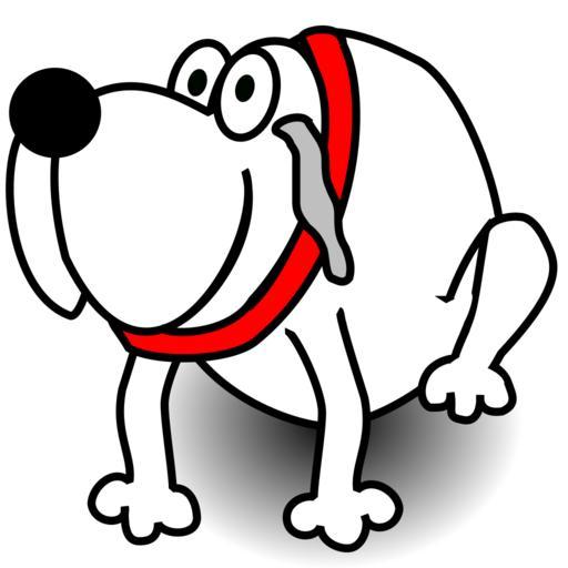 Keywords: dog animal pet grin sit happy cartoon nose collar red white