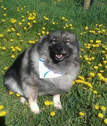Keywords: dog animal pet keeshond happy dog sitting dog canine
