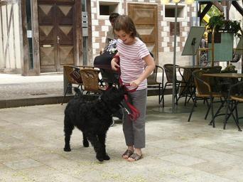 Keywords: dog animal pet labradoodle black girl with dog kid with dog young girl young kid happy play girl child playing
