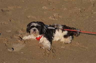 Keywords: dog beach sand ocean cute canine fun outdoor play male