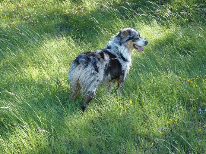 Keywords: dog berger australian meadow grass animal summer