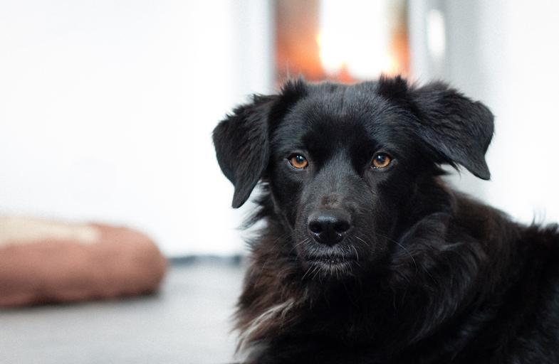 Keywords: dog black pet head puppy fireplace animal labrador snout black dog view