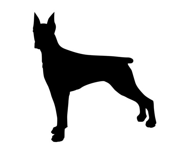 Keywords: dog doberman animal pet domestic dangerous alert standing silhouette black