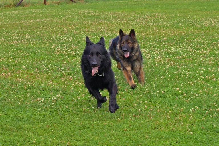 Keywords: dog dogs old german schäfer dog hunt race play playful animal meadow green black