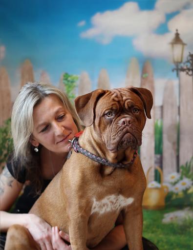 Keywords: dog dogue de bordeaux mastiff bordeaux burgundy puppy she female face peace