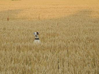 Keywords: dog field pets summer grain animal ears of corn