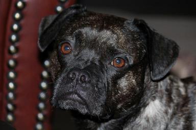 Keywords: dog french bulldog pet bulldog animal snout attention male portrait friendly expression fur noble hundeportrait obedience leather armchair