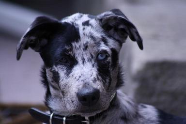 Keywords: dog hybrid pet medium young dog portrait awakened eye colors close dog head dear