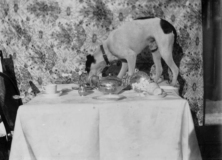 Keywords: Dog on a table set for tea (1293698).jpg Abstract Image of a dog on a table with up-turned sugar bowl and teacups Size mm 163 exhibition history Institution National Library of Wales Technique negative glass plate negative bw object history CC-zero Creator Percy Benzie Abery 1293698 Dog on a table set for tea 1293698 Uploaded with GWToolset Dog on a table set for tea 1293698 http //dams llgc org uk/iiif/test/image/1293698/full/1000 /0/default jpg Images uploaded as part of NLW - WMUK collaboration Photographs by P B Abery in the National Library of Wales NLW images of animals |
