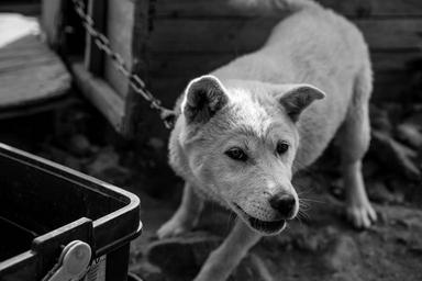 Keywords: dog puppy animal snood it was great to see um dog house pet dog ball one hundred nine hybrid excited black and white