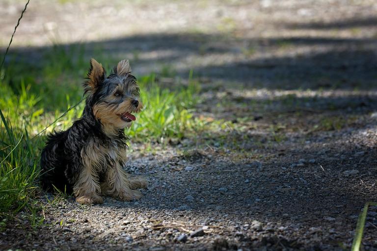 Keywords: dog puppy young animal young dog out nature away seat animal attention pet small dog cute maltese young yorkshire terrier