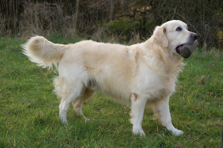 Keywords: dog retriever golden retriever pet animal fur hair fun awakened walk attention mindful