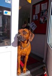 Keywords: dog ridgeback curious