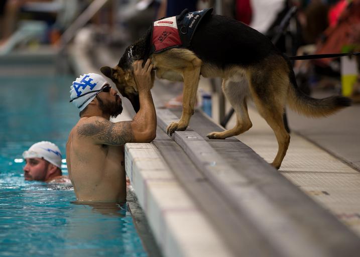 Keywords: dog service canine race competition swimmer care love swim pool water preparation
