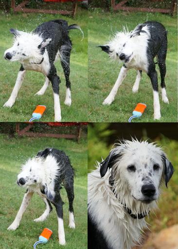 Keywords: dog wet shake fetch swim