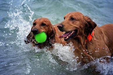 Keywords: dogs beach wet play summer pet canine water sand vacation animal active fur ball outdoor nature puppy activity doggy