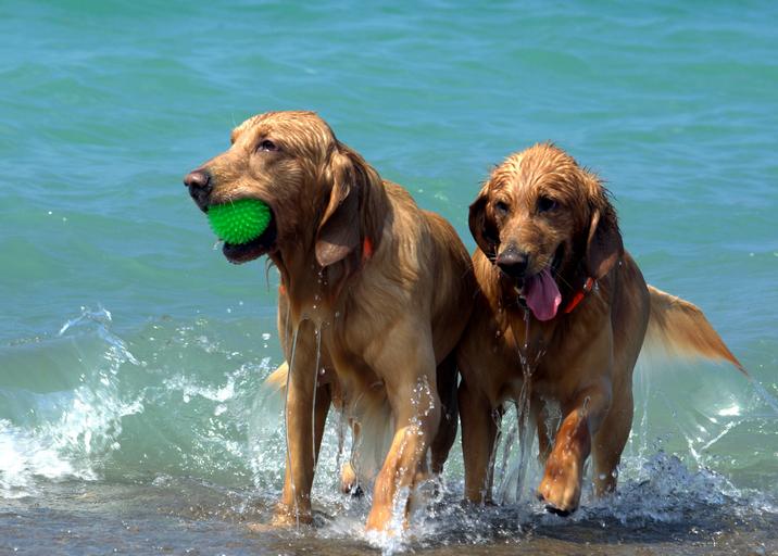 Keywords: dogs beach wet play summer pet canine water sand vacation animal active fur ball outdoor nature puppy activity doggy