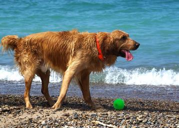 Keywords: dogs beach wet play summer pet canine water sand vacation animal active fur ball outdoor nature puppy activity doggy