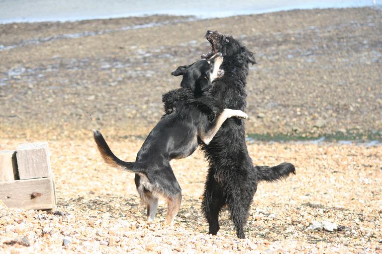 Keywords: dogs play beach