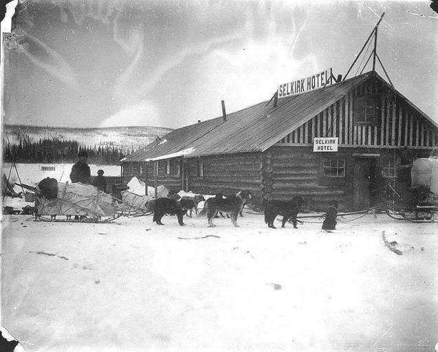 MAKE A MEME View Large Image Dogsled in front of the Selkirk Hotel, Yukon Territory, March 12, 1901 (SARVANT 165).jpeg Photograph Creator Henry M Sarvant On verso of image O J Brown's dog team Selkirk Hotel Mar 12 1901 PH Coll 35 565 Klondike Gold Rush Subjects LCTGM ...