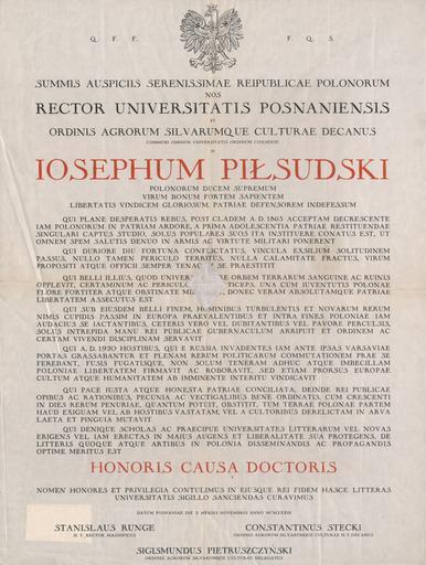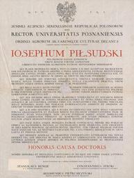 Keywords: Doktorat Honoris Causa dla Jozefa Pilsudskiego od Uniwersytetu Poznanskiego.jpg paper accession number 53/296/0/176 place of creation Poznań cc-zero Józef Piłsudski in 1933 State Archive in Poznań Uploaded with VicuñaUploader Adam Mickiewicz University 1933 in Poznań |