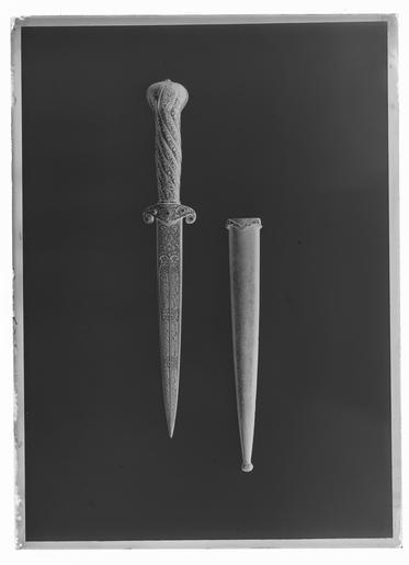 | Keywords: Dolk, Persien, 1500-talets slut, den s.k. Lammska dolken - Livrustkammaren - 77513-negative.tif Dolken är helt av brunerat -mörkanlöpt stål <br/> <br/>Fäste med spiralformig kannelering upptill pungformigt vidgat Kannelyrerna möts strålformigt där de sammanhålls av en cabochonslipad i kista fattad turkos Fattningen omgiven av en blomliknande krage av guld Hela fästet täckt av en yttäckande ornering av påslaget guld med utsparade rankor och bladornament Korta inrullade parerstänger med en slags styrskena på båda sidor med fem turkoser som den på fästet dekoren också lika som den på fästet i övrigt <br/><br/>Klinga rak tvåeggad med yttäckande ornering av påslaget guld med utsparade rankor och bladornament 30 mm från klingbasen på båda sidor två solfjädersliknande fördjupningar och därefter fram till spetsen två bredvid varandra liggande fördjupningar I dessa tre efter varandra liggande utsparade ovaler med persisk inskription i guld Hela klingan med en smal kant utan ornering original caption end other date century 16 turquoise b4 - blankvapen - fästdekor material turkos - steel b12 - blankvapen - fäste och klinga material stål - gold b45 - blankvapen - fäste och klingdekor material guld g 190 size mm 20 klinga size mm 70 klinga size mm 40 size mm 273 LRK Carl Robert Lamm Fredrik Robert Martin Fil dr konstsamlare 1868- Stockholm Sverige Meisterwerke Muhammedanischer Kunst Carl Robert Lamms samling 1993 Hunt for Paradise Court Arts of Safavid Iran 1501-1576 2003-2004 place of origin original filename LN_B01809_004689 42017 inventory number LRK 5360 77513 CC0 Dolk Persien 1500-talets slut den s k Lammska dolken - Livrustkammaren - 77513 tif <gallery caption Different images of same object > File Dolk Persien 1500-talets slut den s k Lammska dolken - Livrustkammaren - 68954 tif </gallery> |