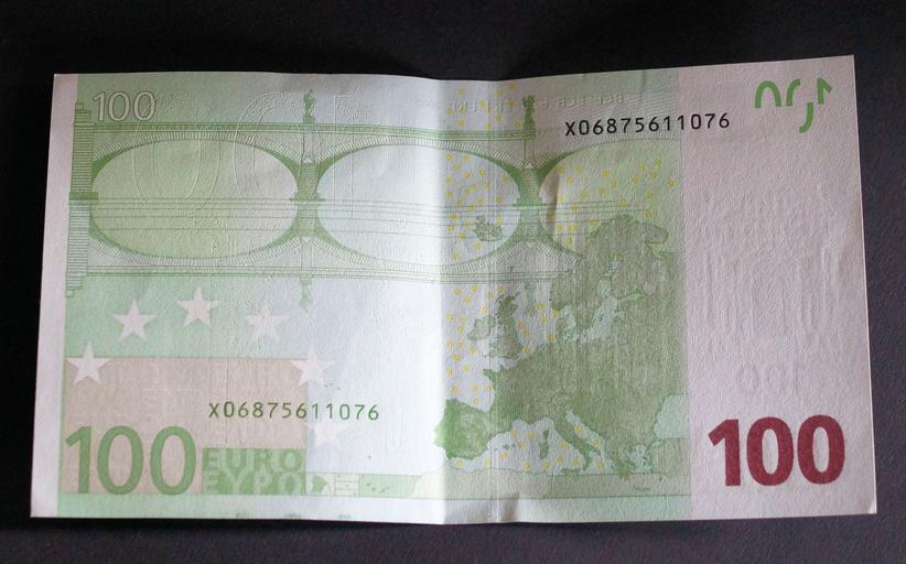 Keywords: dollar bill 100 euro currency paper money banknote back