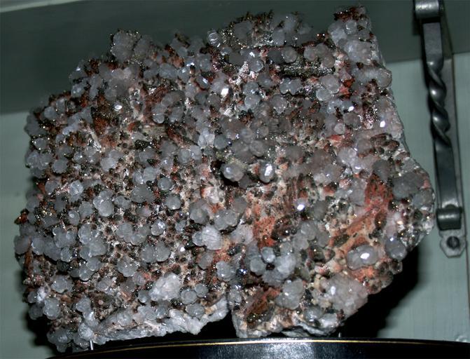 Keywords: Dolomit 1.jpg Mineral dolomite chemical composition CaMg CO<sub>3</sub> <sub>2</sub> from collection of National Museum Prague Czech Republic originally from Czech Republic Minerál dolomit ze sbírek Národního muzea v Praze původem z Příbrami v Čechách own Karelj 2008-04-20 Dolomite Geological and mineralogical Exhibition NM Prague |
