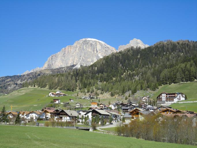 Keywords: dolomites mountains rock panorama sky blue mood italy south tyrol villages nature