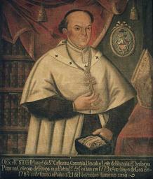 Keywords: Dom Frei Manuel de Santa Catarina.png pt O Ex mo e R mo S r D Fr Manoel de S ta Catharina Carmelita Descalço Lente de Filozofia e Theologia Prior no Collegio de Braga sua Patria B o de Cochim em 1779 e Arcebispo de Goa em 1784 onde tomou o Pallio a 21 de Novembro do mesmo anno c 1780s http //www2 cm-evora pt/conventoremedios/Atas/comunica C3 A7 C3 B5es/loureiro pdf Dr José João Loureiro - As Galerias dos Prelados Carmelitas Descalços e seu Pintor Atas do Ciclo de Conferências sobre Convento de Nossa Senhora dos Remédios e a Ordem do Carmo em Portugal e no Brasil associado à Exposição Convento de Nossa Senhora dos Remédios Convento dos Remédios Évora 22 23 e 24 de Maio de 2013 Creator Estanislau Luís António other versions PD-old-100 Uploaded with UploadWizard 18th-century portrait paintings of bishops 18th-century portrait paintings of standing men at half length 18th-century portraits paintings in Portugal Manuel de Santa Catarina Catholic choir dresses Estanislau Luís António |
