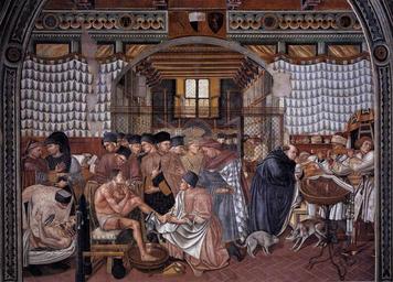 Keywords: Domenico di Bartolo - Care of the Sick - WGA06417.jpg Artwork Creator Domenico di Bartolo between 1441 1442 Fresco Institution Spedale di Santa Maria della Scala Siena object history credit line accession number WGA link 6417 http //www wga hu/art/d/domenico/bartolo/speda2 jpg http //www wga hu/html/d/domenico/bartolo/speda2 html PD-old-100 painting other Italian 1401-1450 Domenico di Bartolo Pellegrinaio di Santa Maria della Scala Siena Medicine in art 1440s frescos in Italy WGA form painting WGA type other WGA School Italian WGA time period 1401-1450 1440s paintings from Italy History of medicine in Italy |