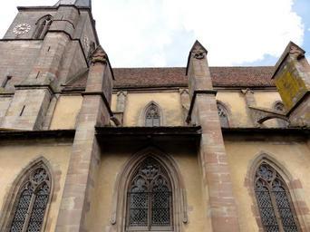Keywords: Domfessel EgliseProt 05.JPG Alsace Bas-Rhin Domfessel Eglise protestante Saint-Gall Façade sud avec les arcs-boutants own 2012 Ralph Hammann 48 57 5 495 N 7 9 7 463 E alt 246 7_source exif_heading 2 Église protestante Saint-Gall Domfessel Photographs of Domfessel by Ralph Hammann Flying buttresses in Alsace Taken with Sony DSC-HX5V Gothic pointed arch windows in France Cc-zero