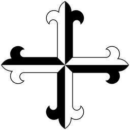 | Keywords: Dominican cross basic.svg  Basic version of the cross of the Dominican Order Order of Preachers taken from the coat of arms gyronny of sable and argent a cross flory counterchanged own - Self-made image converted from a version of the following vector PostScript source code <pre> 300 300 translate 1 58 dup scale -300 -300 translate/A 277 8895 420 moveto 265 79687 420 12 09263 0 180 arc 267 78264 437 10157 22 15096 230 53799 50 53799 arcn 318 13895 454 20313 36 27790 180 120 arcn 281 86105 454 20313 36 27790 60 0 arcn 332 21736 437 10157 22 15096 -230 53799 -50 53799 arcn 334 20313 420 12 09263 0 -180 arc 322 1105 420 lineto 322 1105 180 lineto 334 20313 180 12 09263 180 0 arc 332 21736 162 89843 22 15096 50 53799 230 53799 arcn 281 86105 145 79687 36 27790 0 300 arcn 318 13895 145 79687 36 27790 -120 -180 arcn 267 78264 162 89843 22 15096 -50 53799 -230 53799 arcn 265 79687 180 12 09263 180 0 arc 277 8895 180 lineto 277 8895 420 lineto closepath fill def A 0 600 translate -90 rotate A showpage EOF</pre> 2011 AnonMoos For other versions see File Dominican Cross svg and File Crux-Dominicana svg <gallery>Shield of Domincan Order svg Complete coat of arms</gallery> Dominican Cross Images with PostScript source code SVG coat of arms elements - crosses |