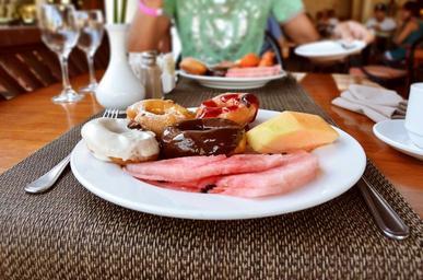 Keywords: dominican republic donat chocolate breakfast plate watermelon food dish useful diet nutrition use delicious colorful