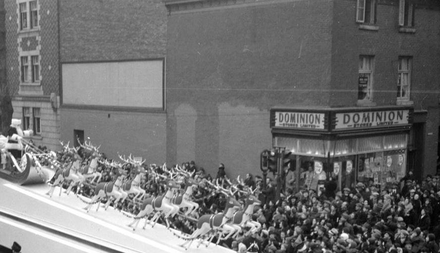 Keywords: dominion montreal eaton's eatons A picture taken during an Eaton's Santa Claus parade. the Flagship store was just across the street. A rare picture of the pre-supermarket era of Dominion. The big surface supermarkets would happen in the end of 40s... The building is long gone, today an office building on what is Maisonneuve Boulevard (formerly Burnside) stands today... Even the other street has changed: University street was renamed in honor of the late Quebec Prime Minister, Robert Bourassa. Picture Updated Source: BAnQ, Conrad Poirier, Eaton's A picture taken during an Eaton's Santa Claus parade. the Flagship store was just across the street. A rare picture of the pre-supermarket era of Dominion. The big surface supermarkets would happen in the end of 40s... The building is long gone, today an office building on what is Maisonneuve Boulevard (formerly Burnside) stands today... Even the other street has changed: University street was renamed in honor of the late Quebec Prime Minister, Robert Bourassa. Picture Updated Source: BAnQ, Conrad Poirier, Eaton's