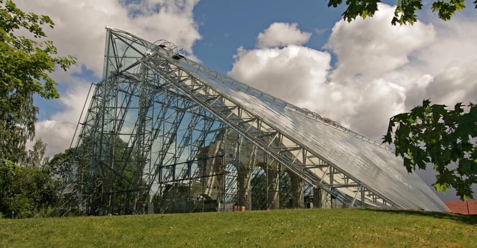 Keywords: Domkirkeruinen Hamar.jpg no Vernebygget over domkirkeruinen på Hamar Arkitekter Lund Slaatto Own Jensens 2008-06-11 Hamar Domkirkeruinene June 2008 in Norway