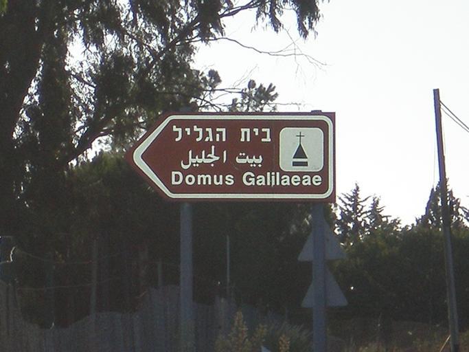 Keywords: Domus Galilaeae road sign.jpg Domus Galilaeae road sign Own 2007-09-24 Itai Domus Galilaeae Multilingual road signs in Israel