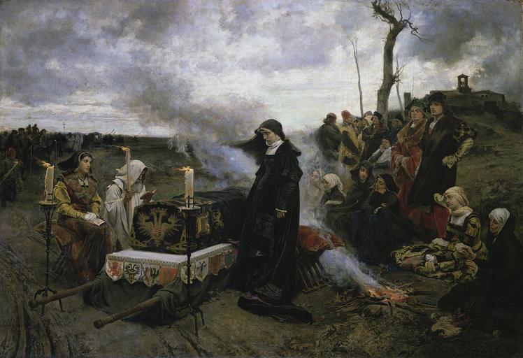 Keywords: Doña Juana "la Loca" (Pradilla).jpg Artwork Q3038406 Creator Francisco Pradilla y Ortiz langswitch Juana la Loca velando el cadáver de Felipe el Hermoso Juana the Mad Holding Vigil over the Coffin of Her Late Husband Philip the Handsome 1877 oil cm 340 500 Institution Prado http //www museodelprado es/imagen/alta_resolucion/P04584 jpg other versions <gallery>File Juana la Loca de Pradilla jpg</gallery> Assessments 1 PD-old-100 16th-century way of life in painting Francisco Pradilla y Ortiz 19th-century paintings in the Prado Museum Joanna of Castile Philip I of Castile 1877 paintings 1506 deaths 19th-century history paintings 19th-century oil on canvas paintings in Spain Coffins in art Death in Spain People with fire in art Mourning in art History paintings in the Prado Museum Death in paintings People with candles in art Burning candles in art |