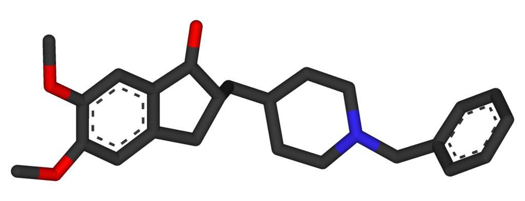 | Keywords: Donepezil 1EVE.png Stick model of donepezil as bound to acetylcholinesterase Hydrogen atoms omitted for clarity <br />Created using http //www pymol org PyMOL http //www accelrys com/products/downloads/ds_visualizer/index html Accelrys DS Visualizer Pro 1 7 and GIMP Optimized with OptiPNG From PDB http //www rcsb org/pdb/cgi/explore cgi pdbId 1EVE 1EVE More information cite journal Kryger G Silman I Sussman JL Structure of acetylcholinesterase complexed with E2020 Aricept implications for the design of new anti-Alzheimer drugs Structure 7 3 297 “307 1999 March PMID 10368299 2008-06-25 Fvasconcellos Donepezil 3D-sticks models |