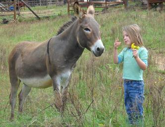 Keywords: donkey child farm friend