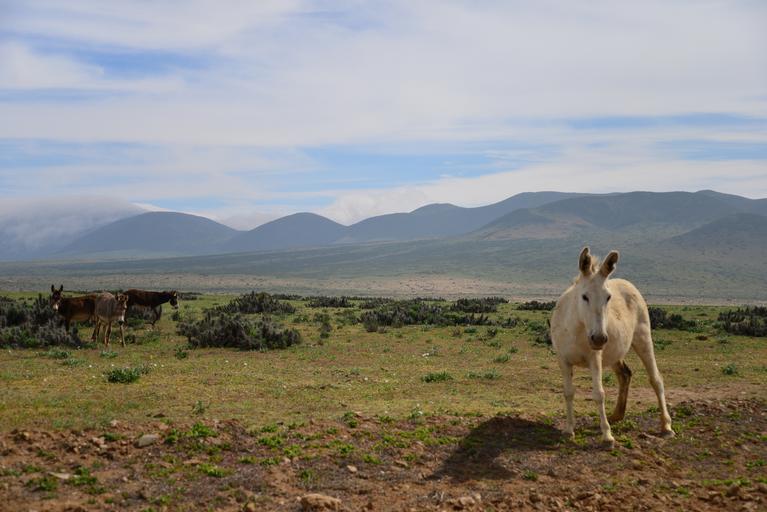 Keywords: donkey white donkey desert landscape mountains fields meadow