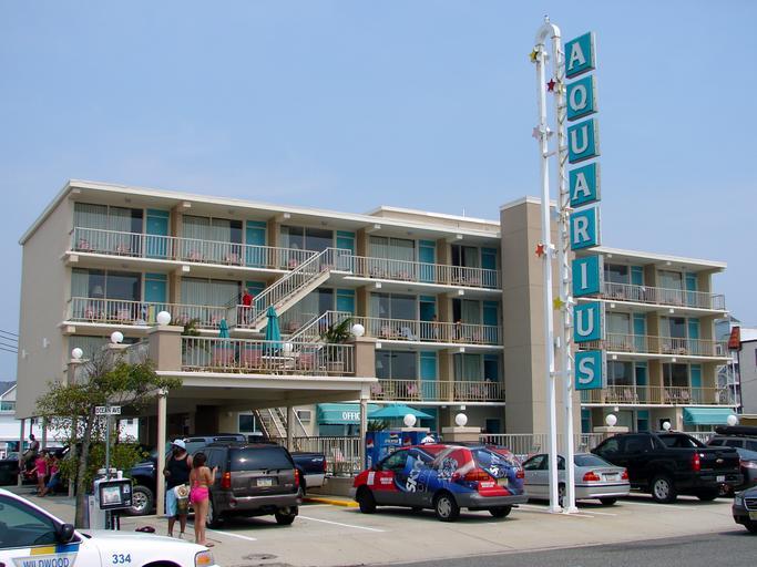 | Keywords: Doo Wop Aquarius Motel NJ.jpg en Aquarius Motel in Wildwood New Jersey in the Doo Wop architectural style Part of the Wildwoods Shore Resort Historic District a New jersey HD not NRHP On Taylor Street between Atlantic and Ocean Avenues 2011-07-04 own Smallbones cc-zero Uploaded with UploadWizard Wildwoods Shore Resort Historic District |