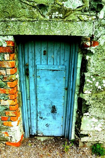 Keywords: door blue entrance old scrap wall brick wood home yard building