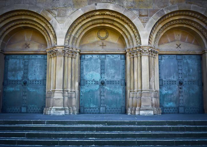 Keywords: door church old historically facade metal house of worship wrought iron ornament düsseldorf