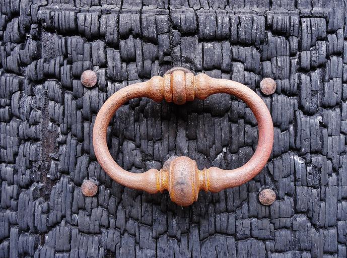 Keywords: door fire wood brule black iron metal handle