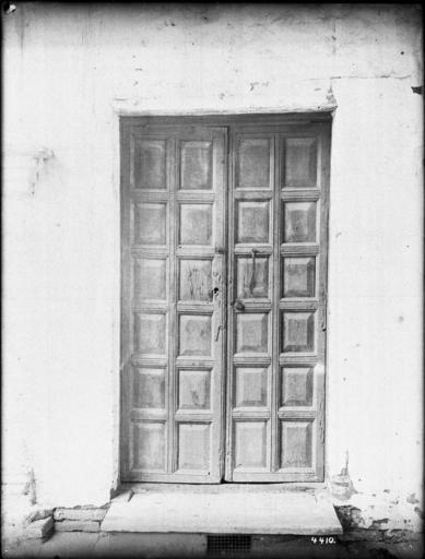 Keywords: Door in front corridor at Mission San Juan Capistrano, California, ca.1908 (CHS-4410).jpg en <br> Door in front corridor at Mission San Juan Capistrano California ca 1908 Photograph of a door in front corridor at Mission San Juan Capistrano California ca 1908 The walls have loose stucco and several cracks The double wooden door has one knob and is divided into 24 small square panels of equal size There is a raised stoop at the foot of the door A coarse mesh covers a small square drain under the stoop A latch hangs loose from one of the doors over the knob Call number CHS-4410 Legacy record ID chs-m16760; USC-1-1-1-14088 Photographer James George Wharton Filename CHS-4410 Coverage date circa 1908 Part of collection California Historical Society Collection 1860-1960 Type images Geographic subject city or populated place San Juan Capistrano; San Juan Capistrano Repository name USC Libraries Special Collections Accession number 4410 Microfiche number 1-137-69 Archival file chs_Volume96/CHS-4410 tiff Part of subcollection Title Insurance and Trust and C C Pierce Photography Collection 1860-1960 Repository address Doheny Memorial Library Los Angeles CA 90089-0189 Geographic subject country USA Format aacr2 2 photographs glass photonegative photoprint b w ; 22 x 17 cm Rights Digitally reproduced by the USC Digital Library; From the California Historical Society Collection at the University of Southern California Subject adlf religious facilities Project USC Repository email specol usc edu Contributing entity California Historical Society Date created circa 1908 Publisher of the digital version University of Southern California Libraries Format aat photographic prints; photographs Geographic subject state California Subject file heading Missions -- Mission San Juan Capistrano Format glass plate negatives Access conditions Send requests to address or e-mail given Phone 213 821-2366; fax 213 740-2343 Geographic subject county Orange Subject lcsh Missions Spanish Subject San Juan Capistrano Mission circa 1908 date created James George Wharton http //digitallibrary usc edu/cdm/ref/collection/p15799coll65/id/16693 PD-old-70-1923 Images from USC Digital Library uploaded by Fæ California Historical Society Collection 1860-1960 Glass plate negatives Photographs by George Wharton James Mission San Juan Capistrano |