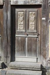 Keywords: door wooden door old input wood house entrance access carving front door pattern closed boards handle rustic decorated brown brick building